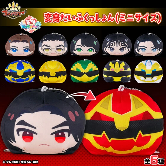 [No.1 Sentai Gozyuger] The six warriors have turned into cute, squishy cushions! Reversible design lets you switch between their pre-transformation and post-transformation forms! Enjoy two types of squishiness with large and mini sizes!
